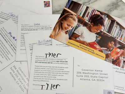 We are gathering students, teachers, parents, and those affected by dyslexia to sign postcards to send to local, state, and national officials to support legislation and policies that affect dyslexic students. WriteToRead will send postcards to your school for your community to sign and send back.